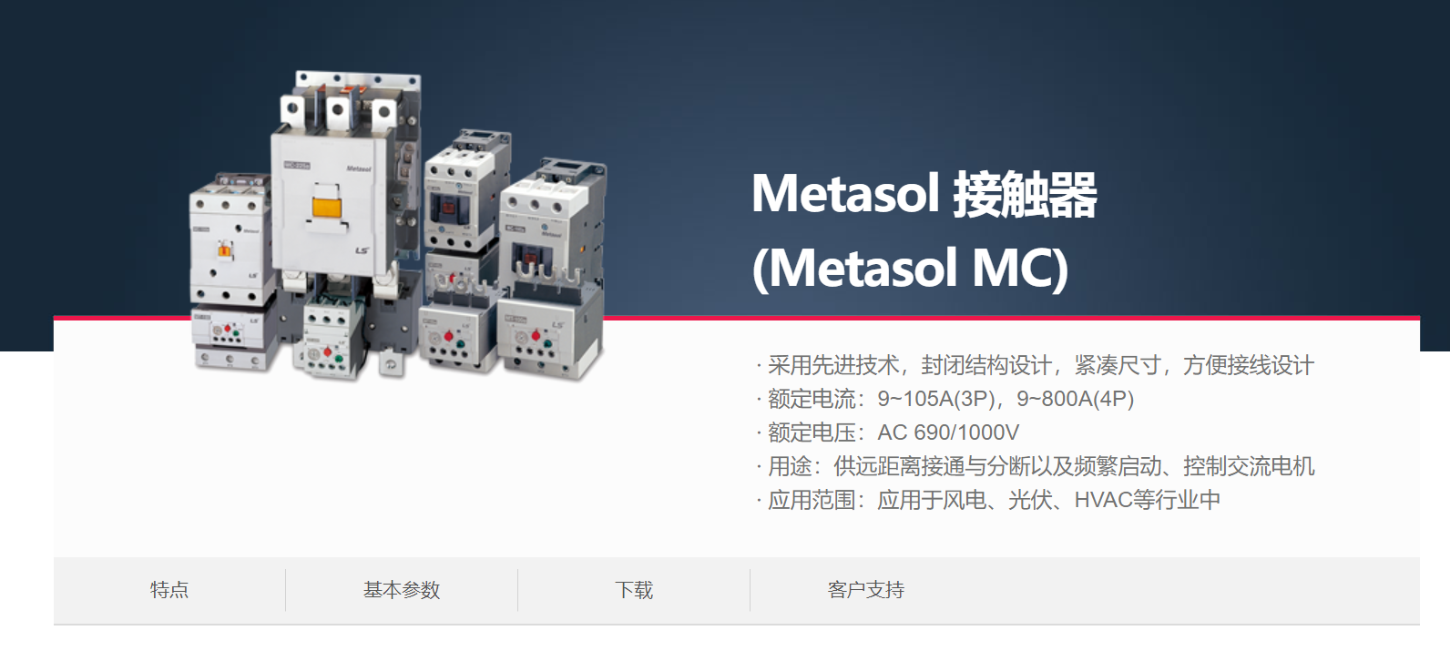 當前位置網站首頁 > 產品展示 > LS產電電氣元器件 > 接觸器(MC)&熱過載繼電器(MS) > Metasol 接觸器 >